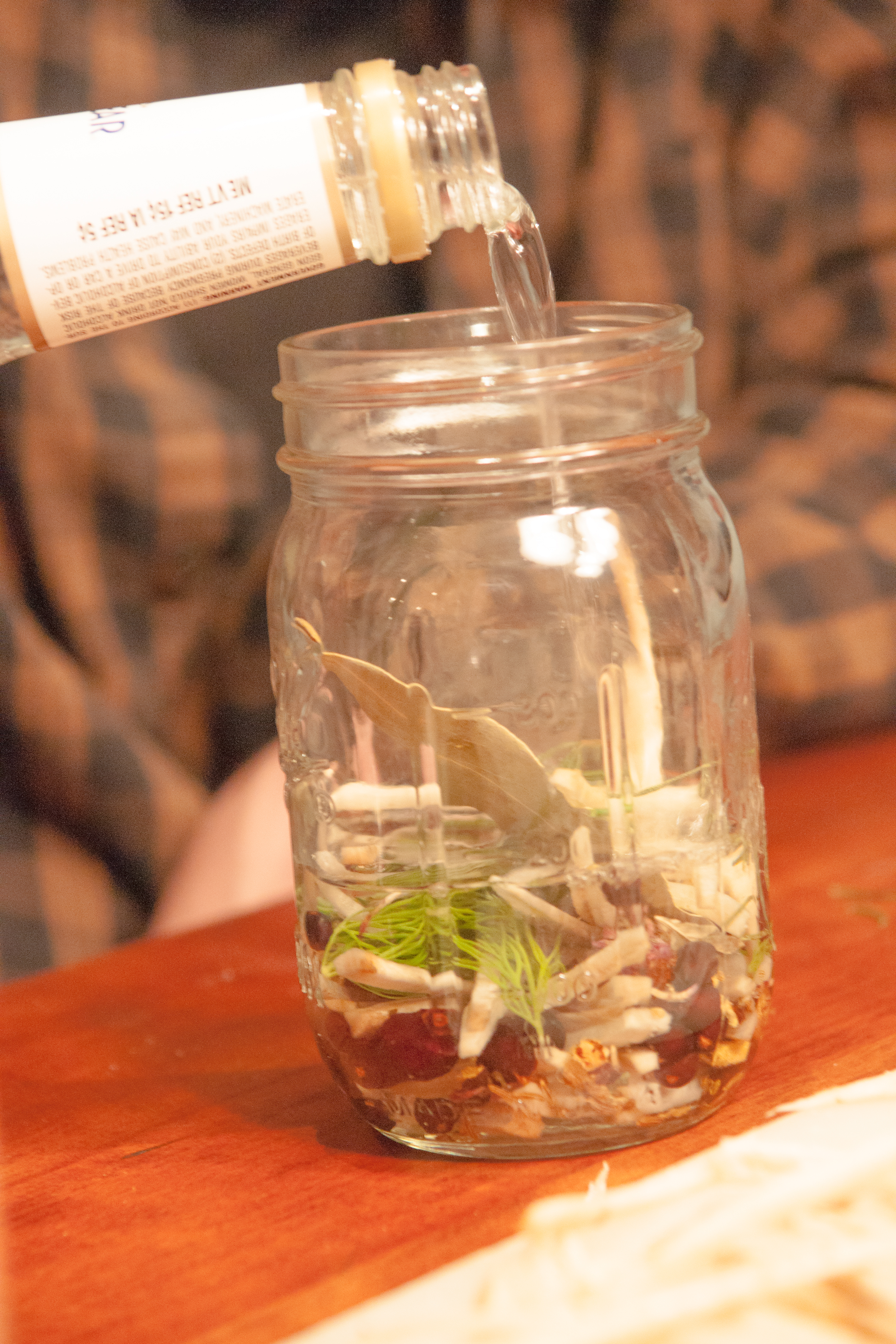 The bitter taste can be derived a few different ways. Most commonly it comes from citrus peels or bitter roots and bark. The bitter taste is then extracted using alcohol that is at least 100 proof. The higher the proof, the more easily flavors are extracted from your ingredients. For our bitter creations we used bourbon whiskey and Everclear (whew 151 proof!). Once you have your bitter agents and alcohol you’re ready to experiment with more complex and subtle flavors.